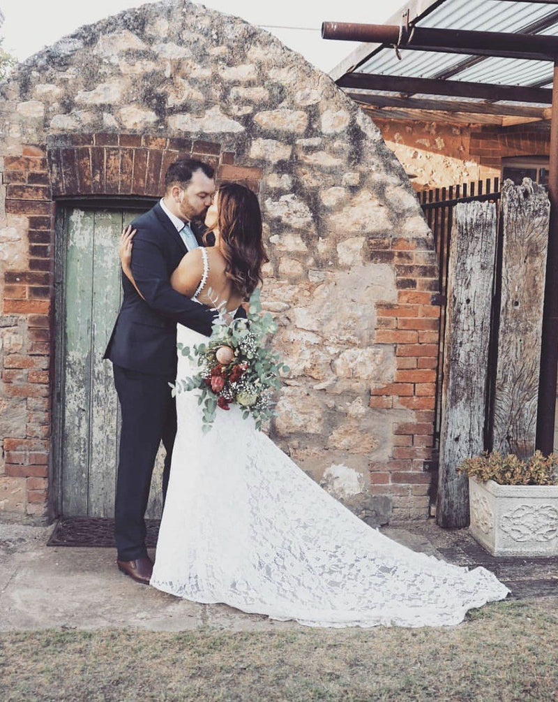 Our customer Mel Fish looked stunning in the Fiona Lace Wedding Dress on her big day. O...