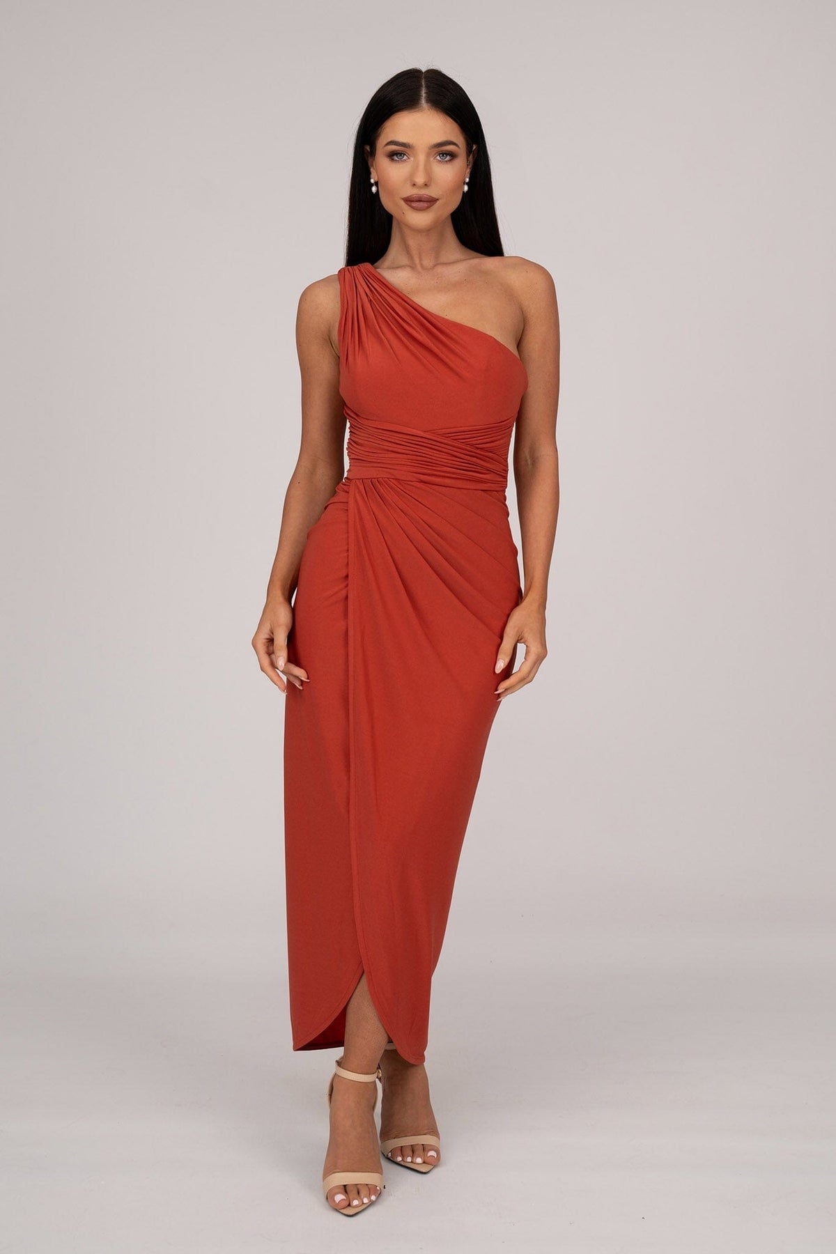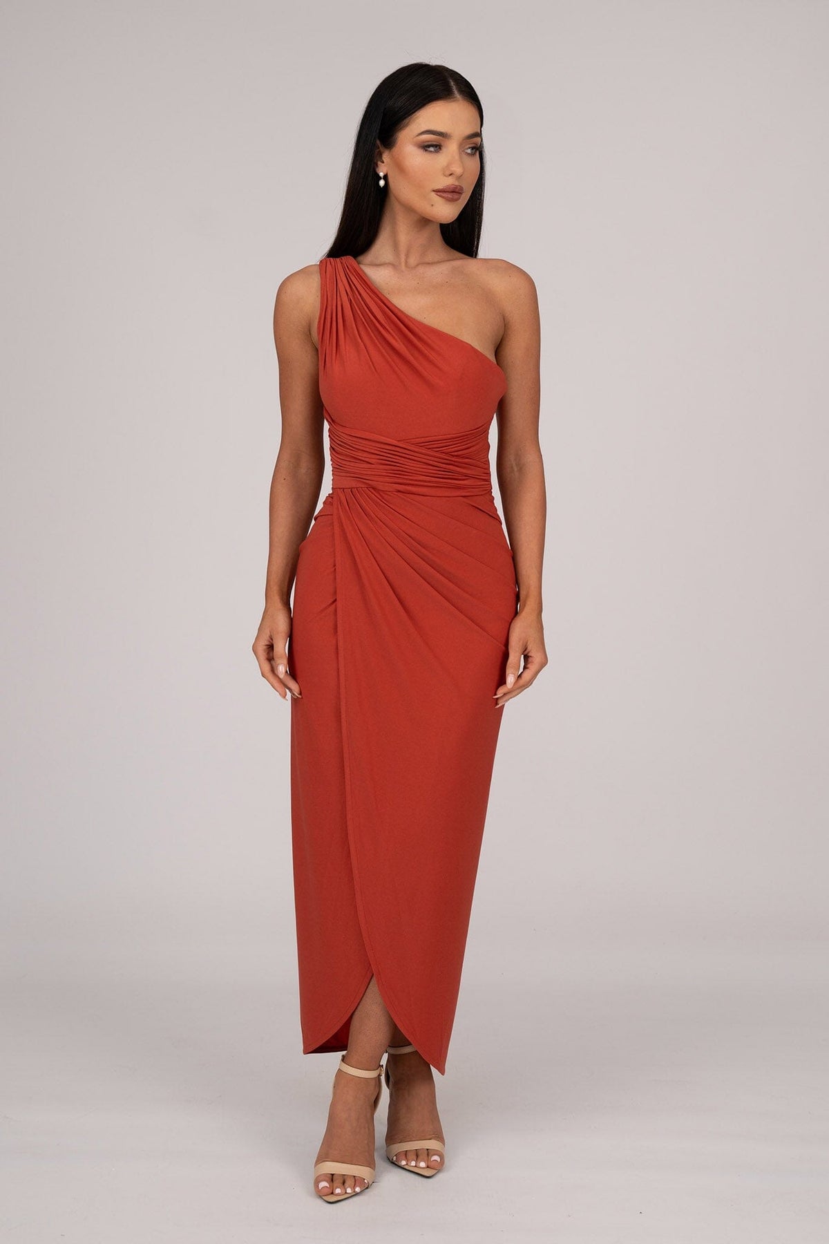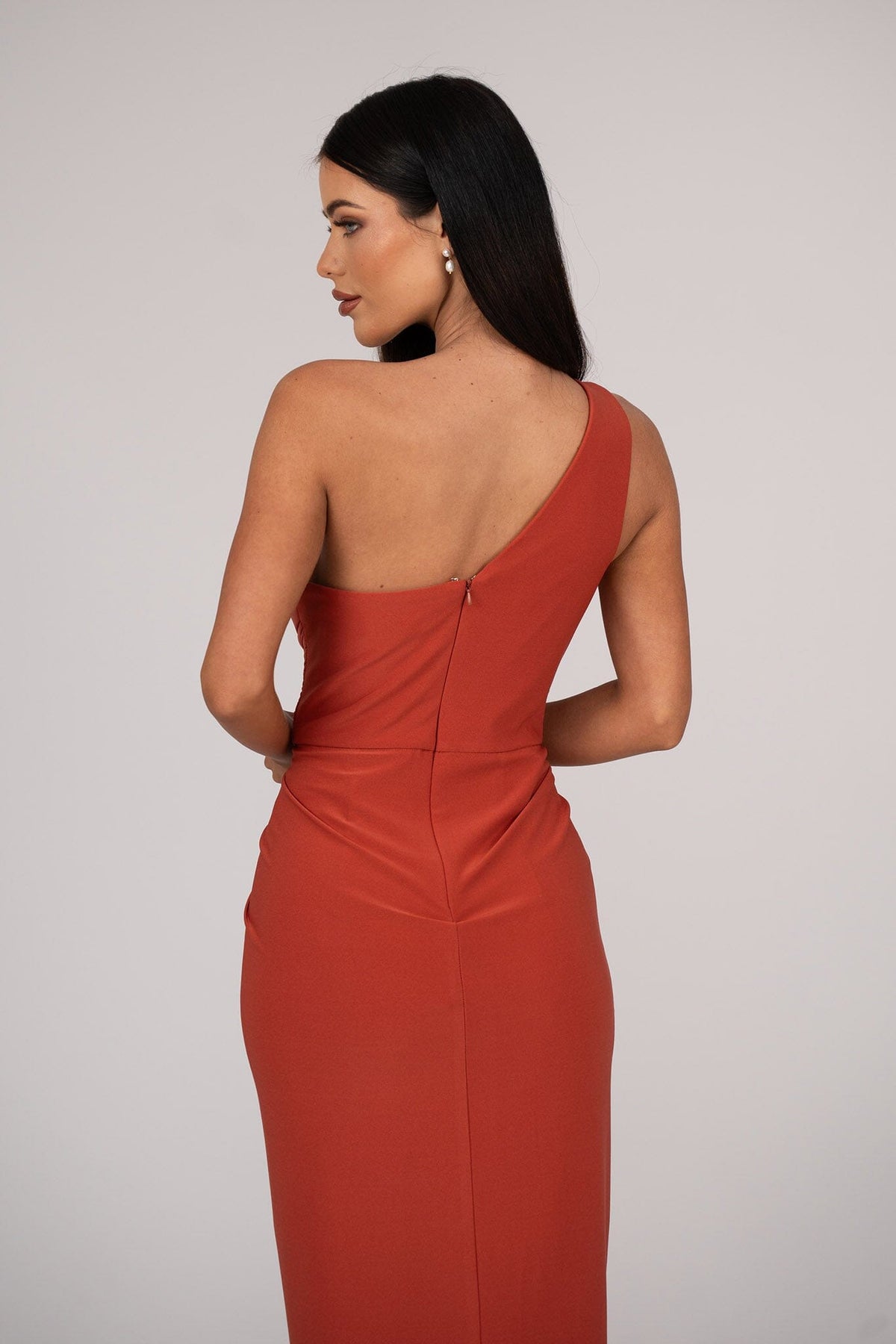 Hayden One Shoulder Midi Dress - Burnt Orange
