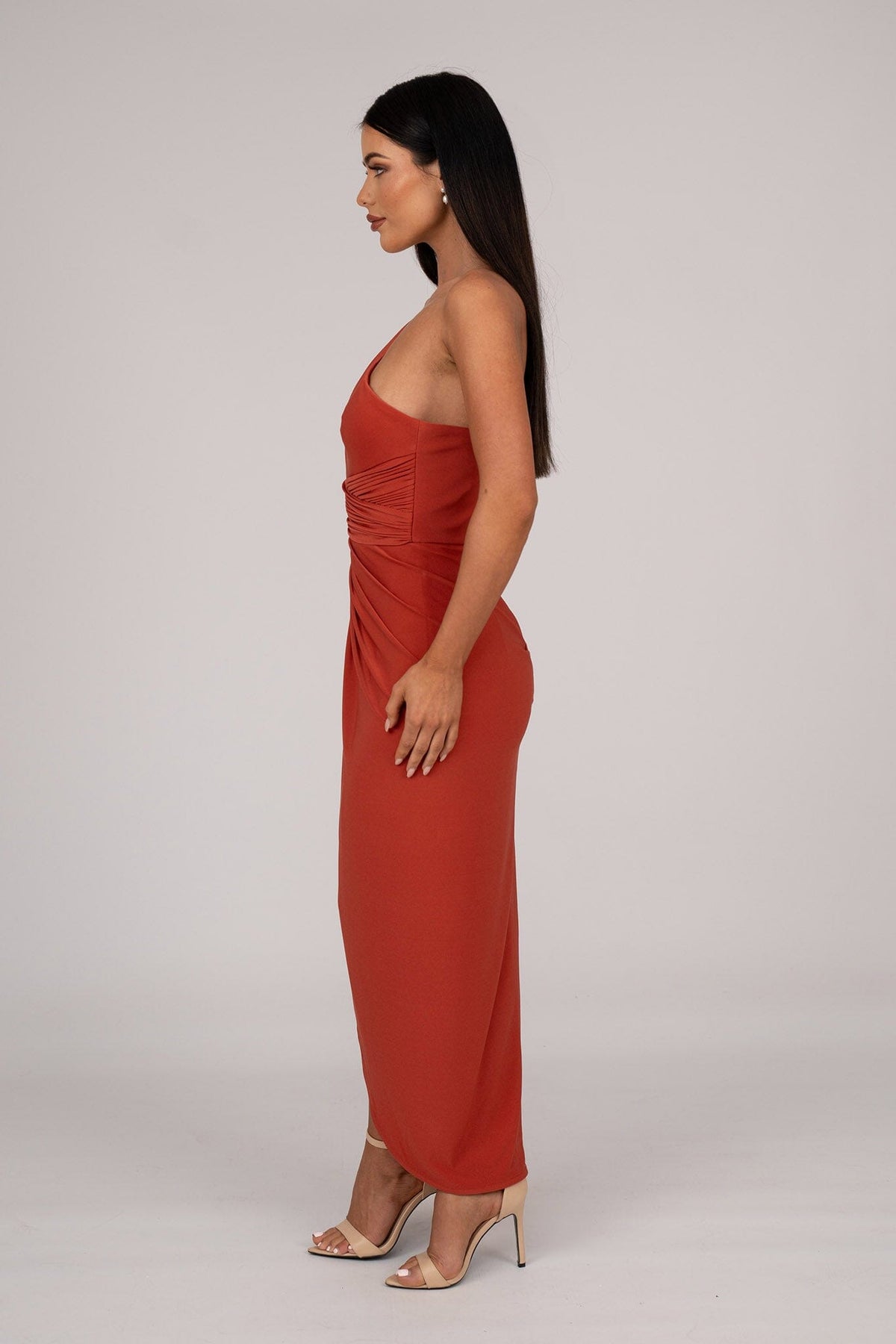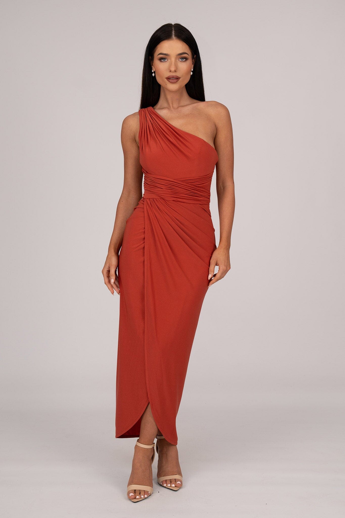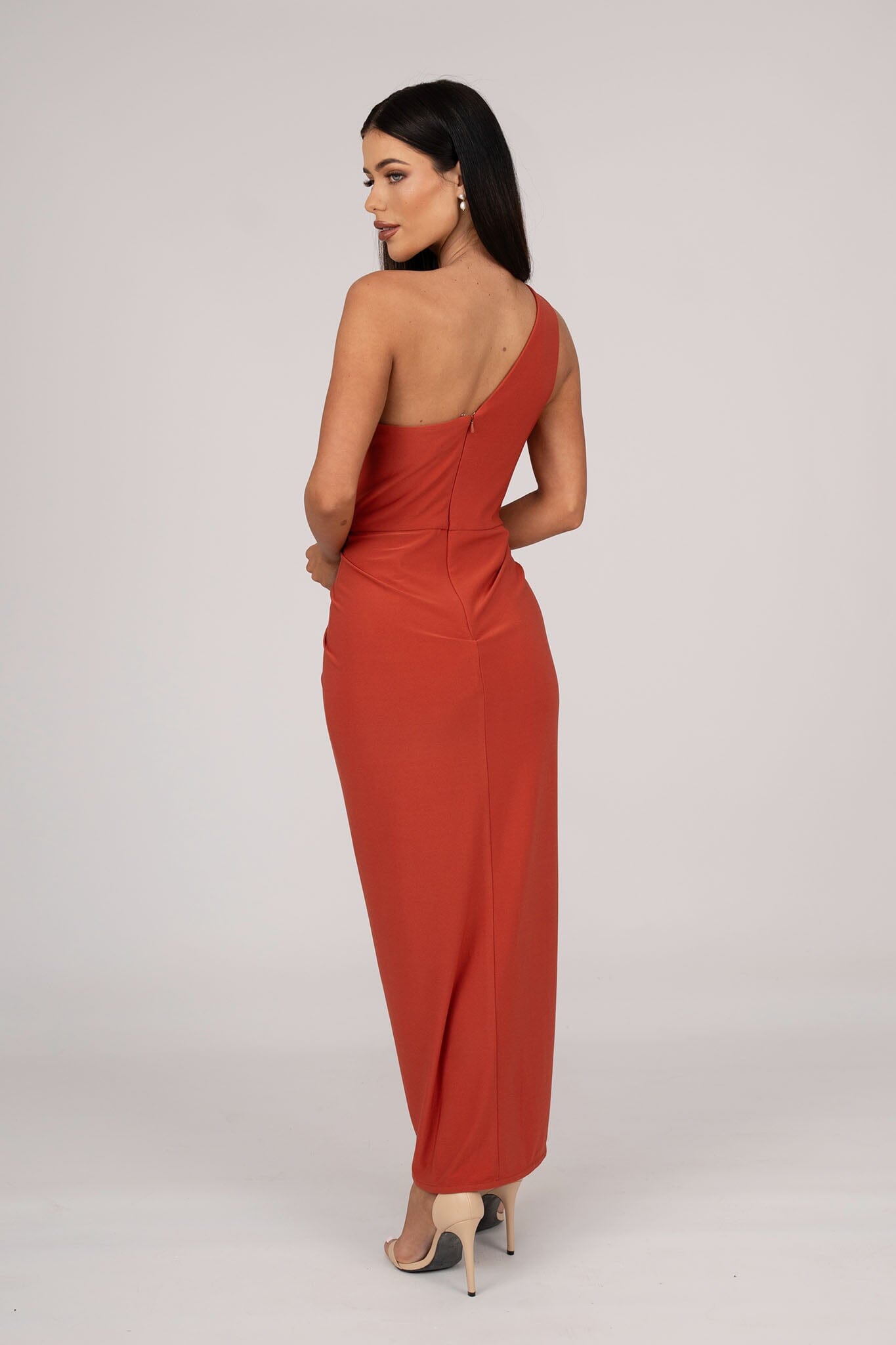 Hayden One Shoulder Midi Dress - Burnt Orange