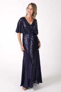 Martha Butterfly-Sleeve Sequin Maxi Dress - Navy (S - Clearance Sale)