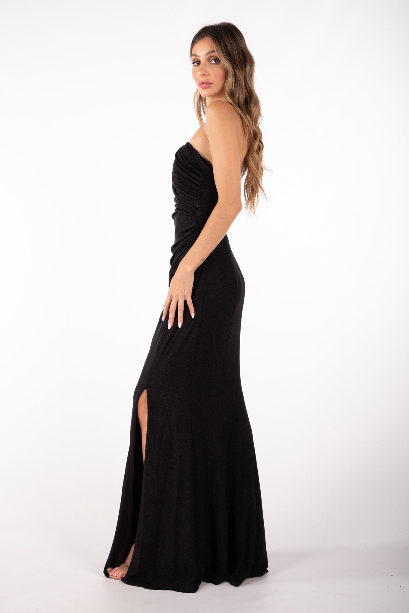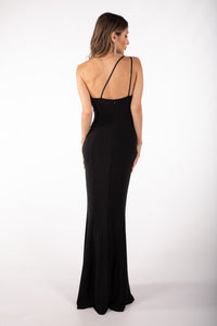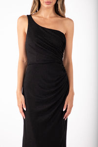 CALI One Shoulder Maxi Dress - Shimmer Black