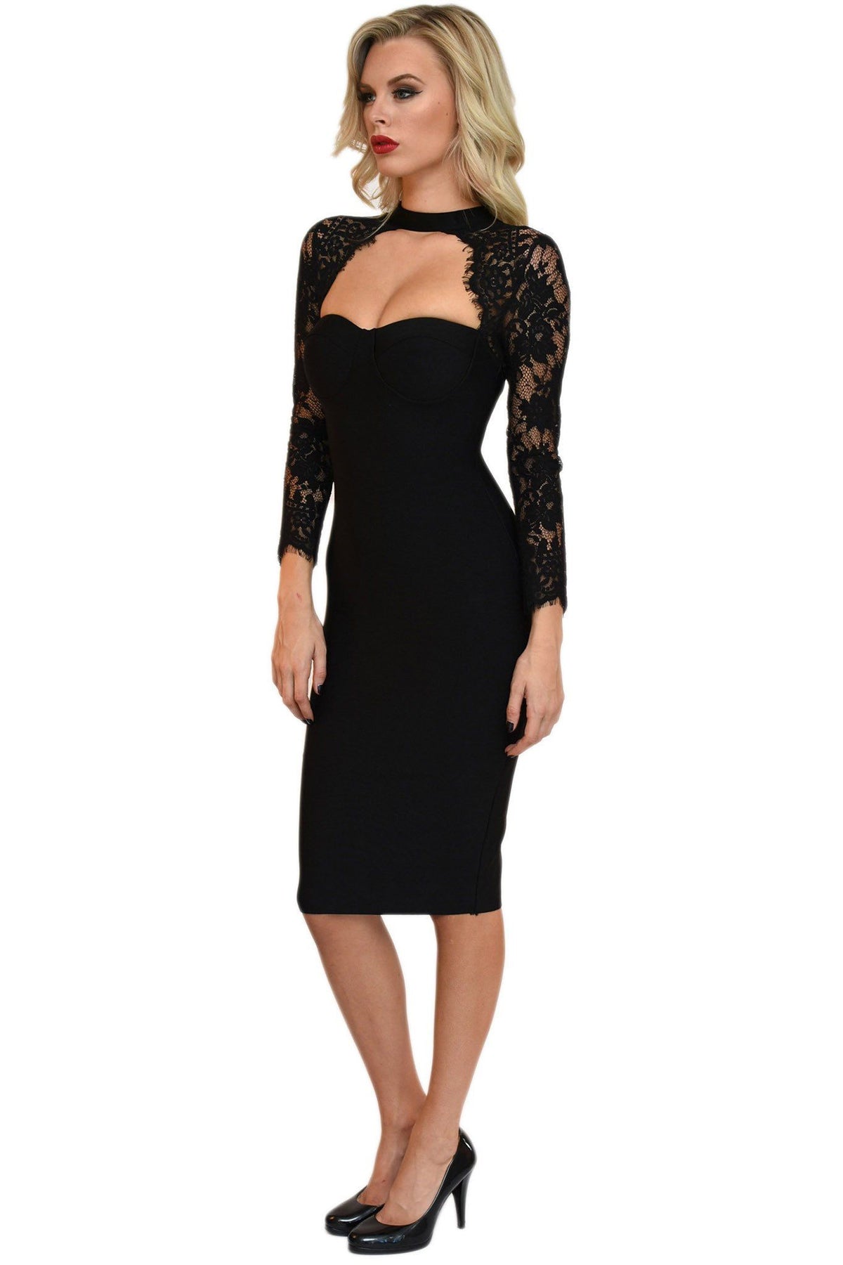 - Lace long-sleeve midi dress