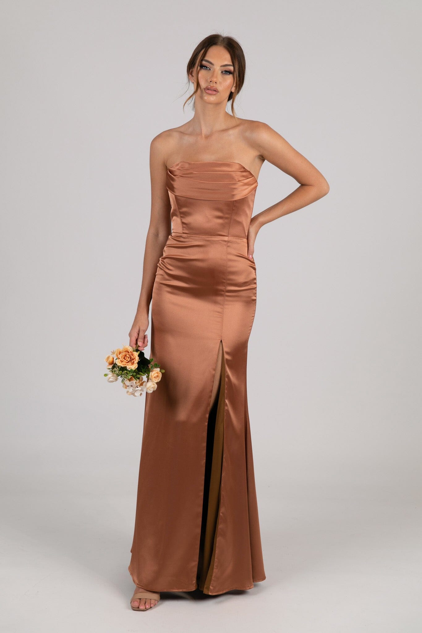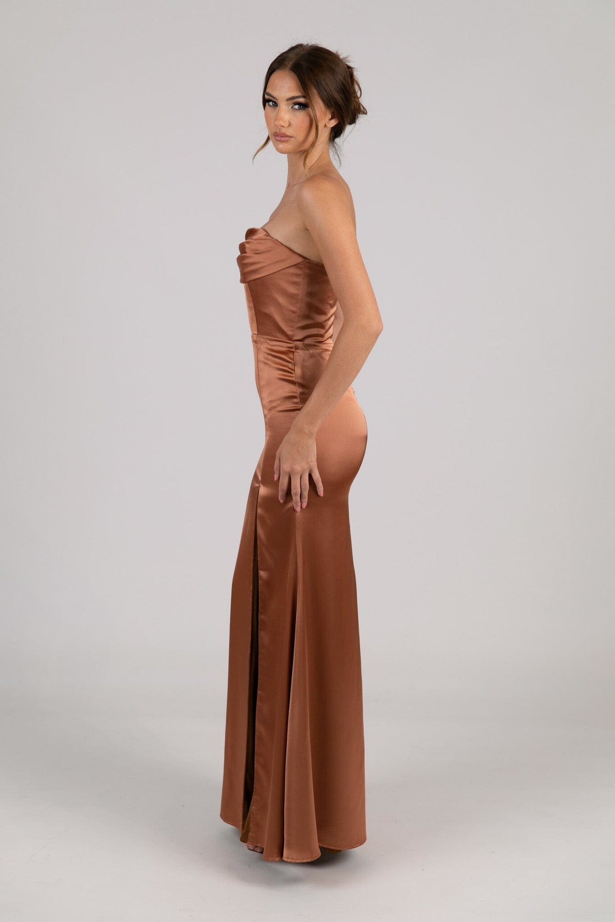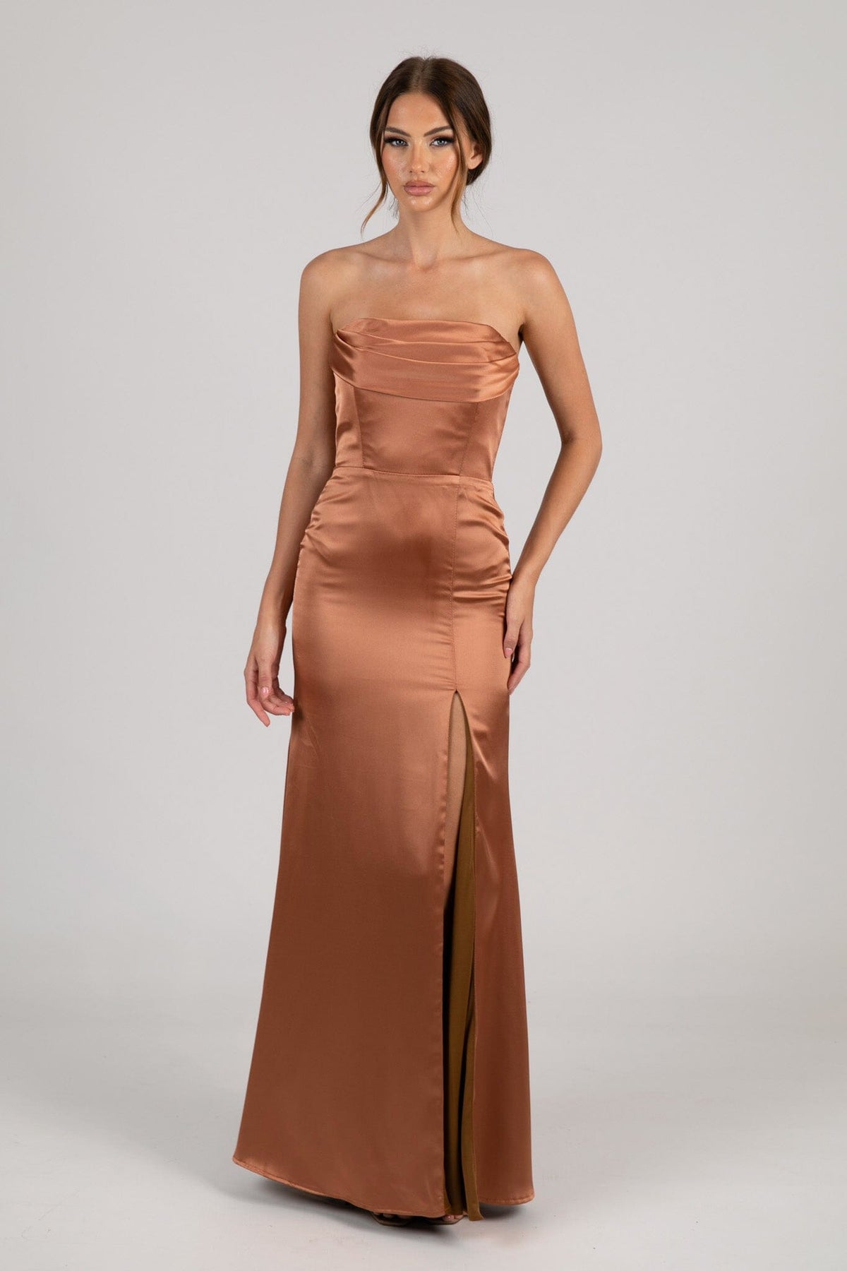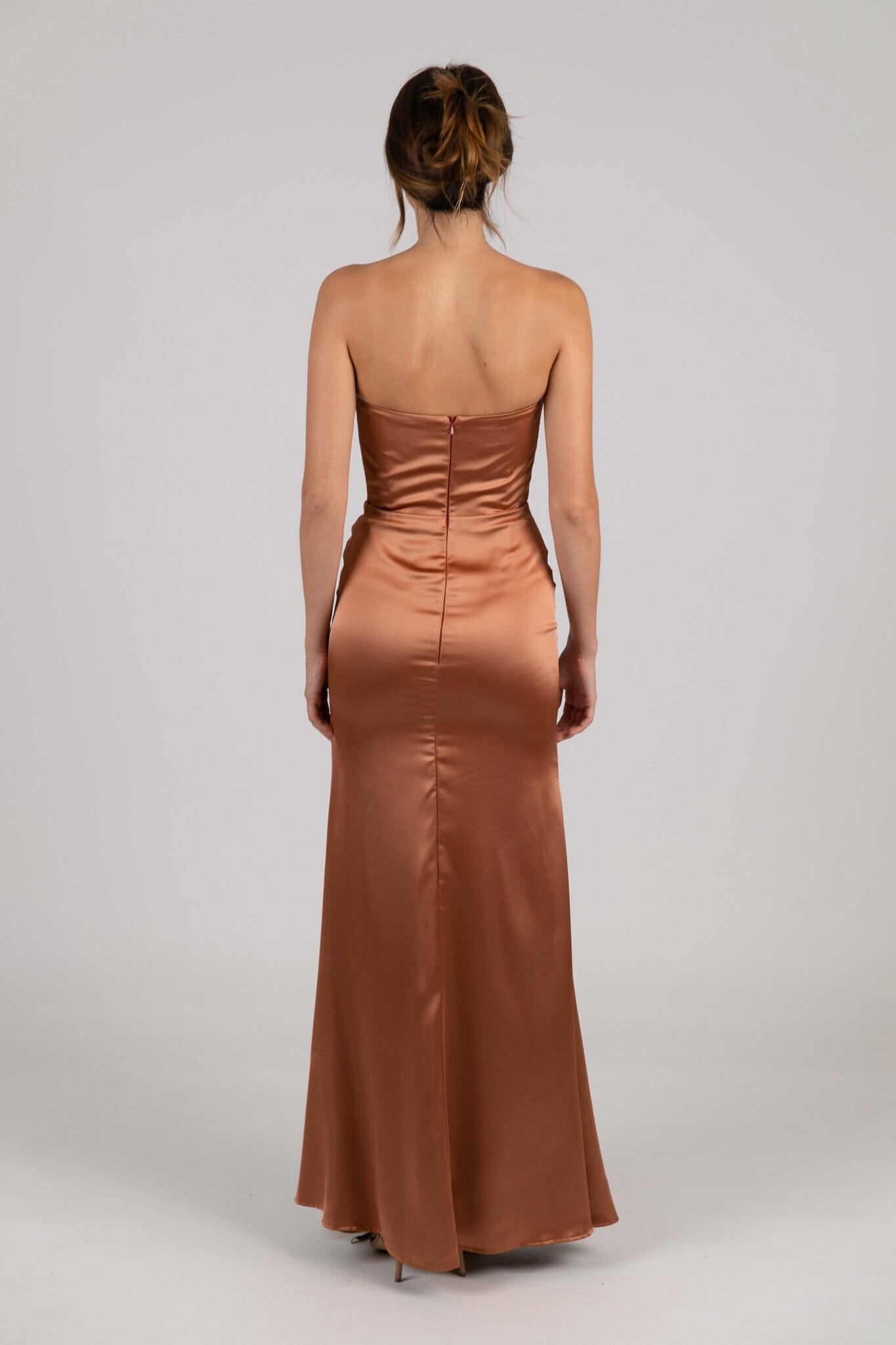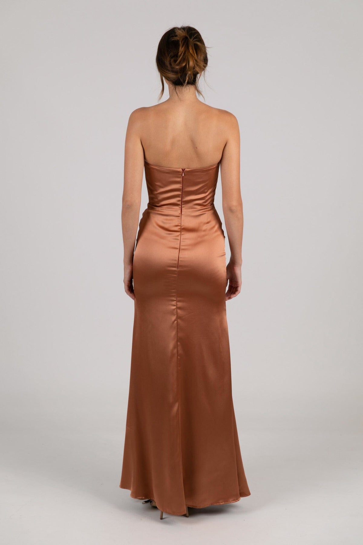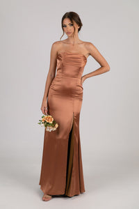 Peyton Strapless Satin Maxi Dress - Terracotta