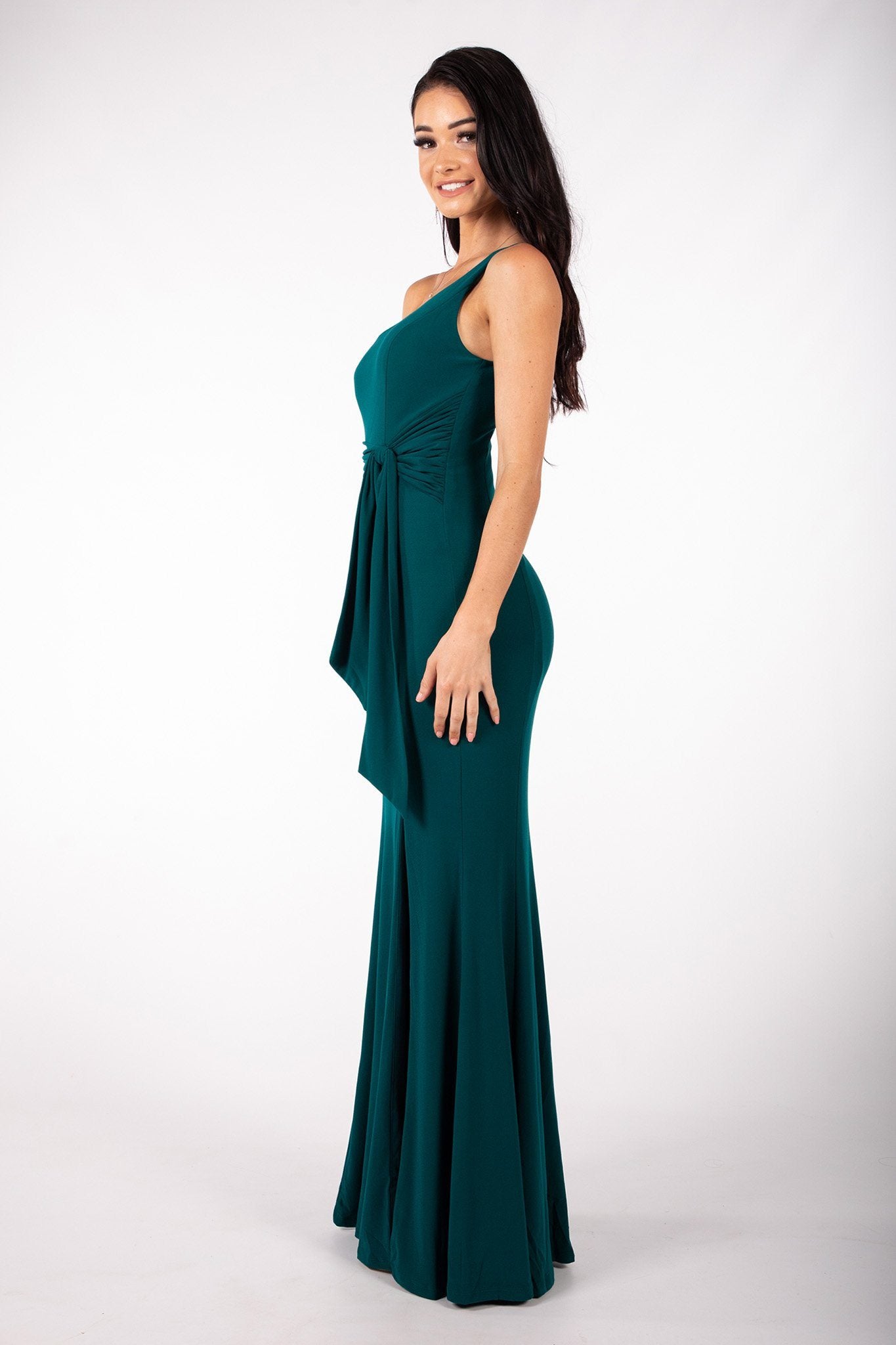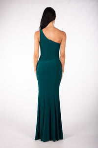 ABIGAIL One Shoulder Maxi Column Dress - Dark Green