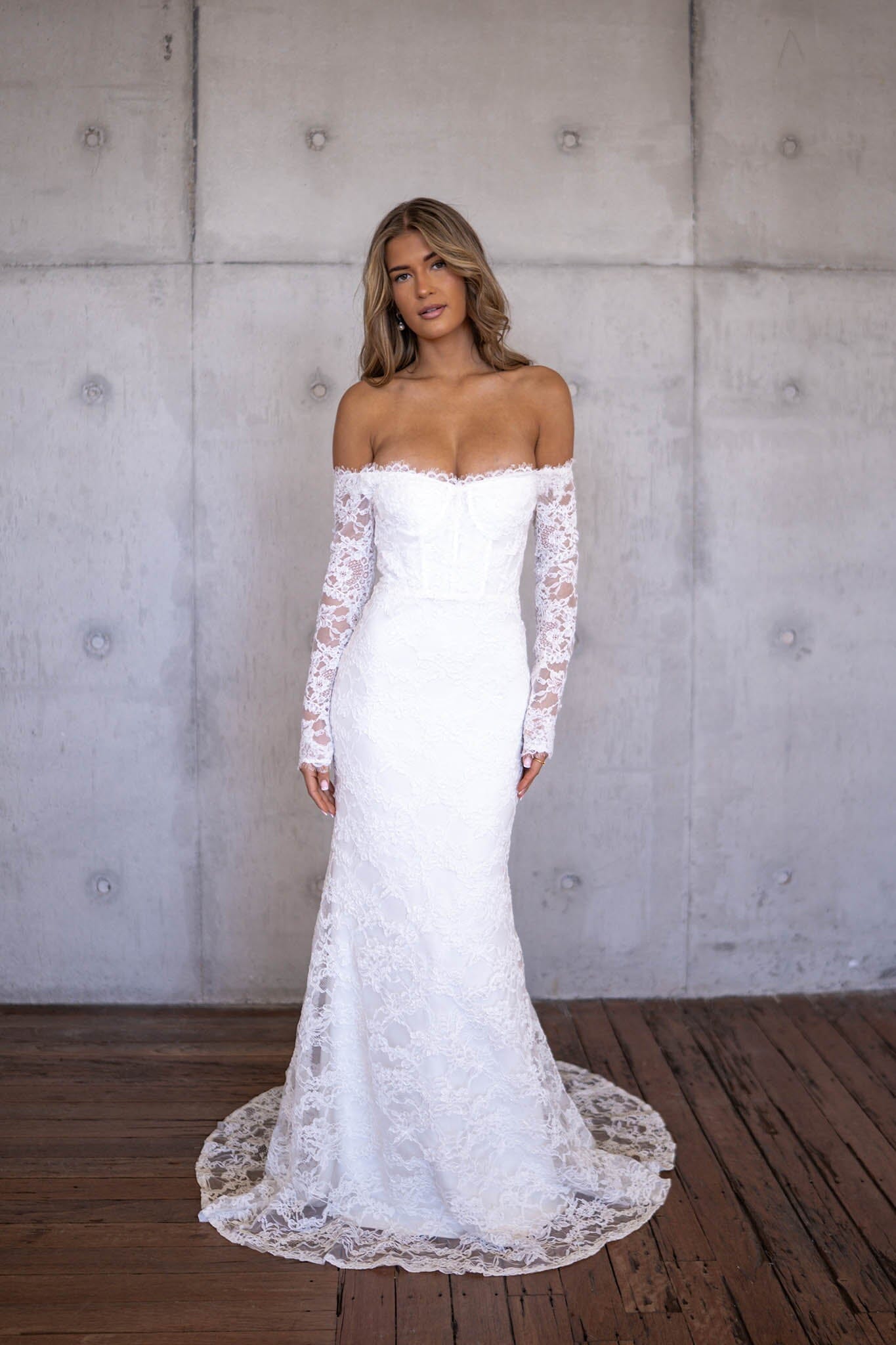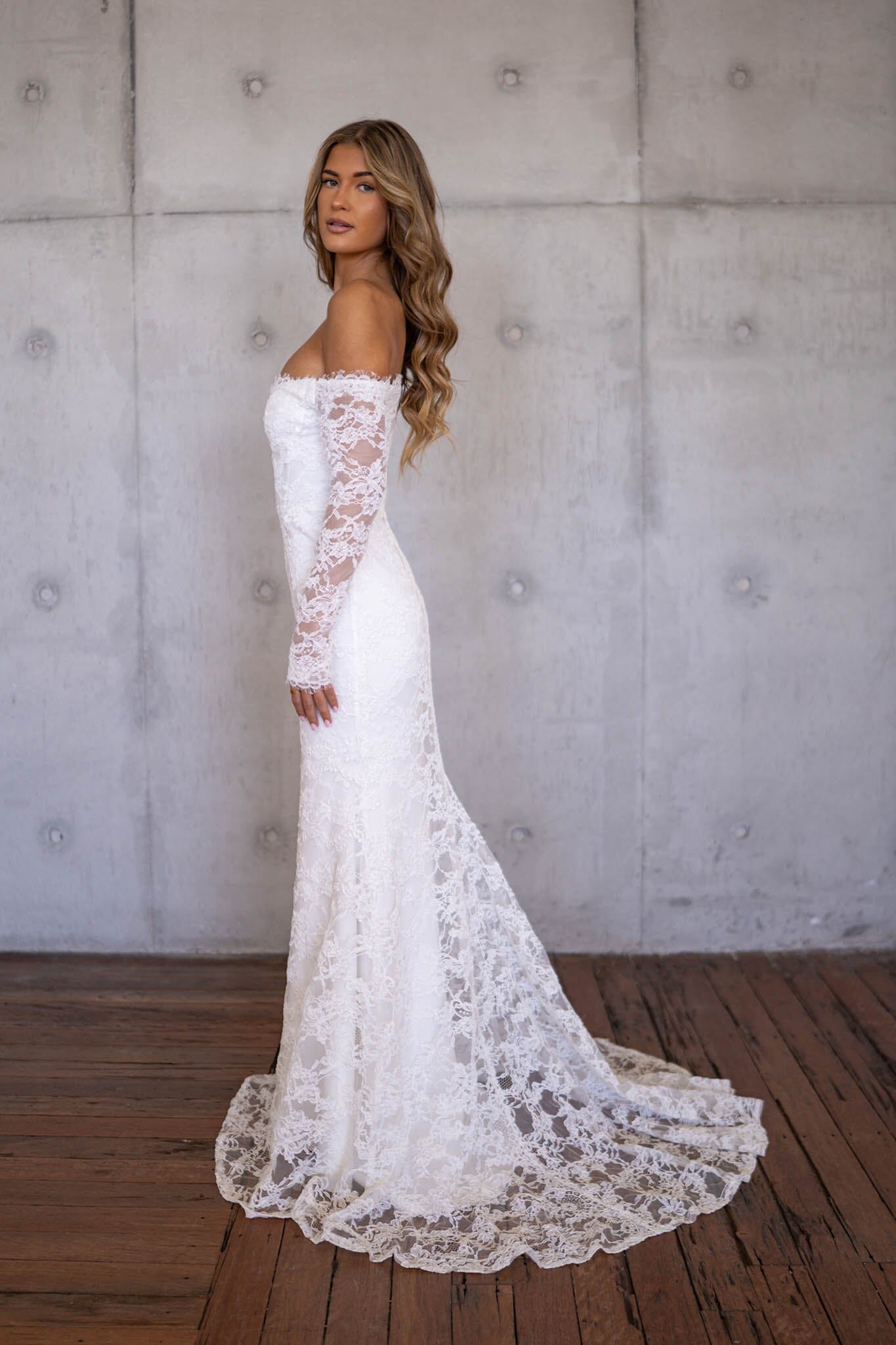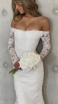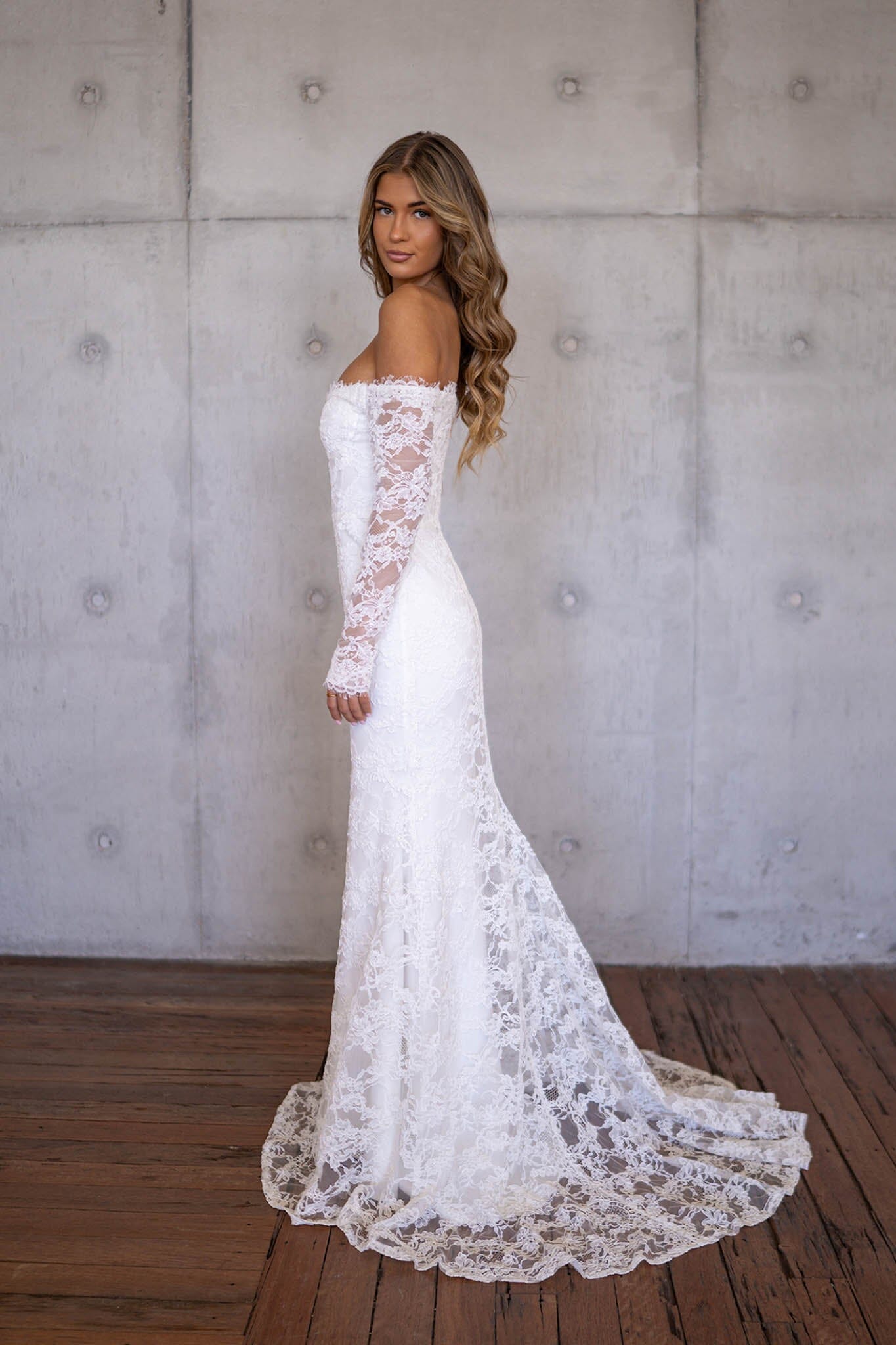 Marisa Off-Shoulder Long Sleeve Lace Gown - Ivory