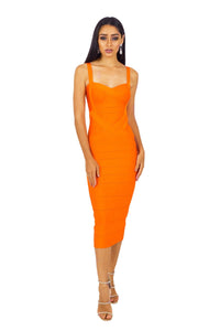 Slip into this stunning midi bandage dress that sculpts an hourglass shape! With its gorgeous sweetheart neckline and crisscross details, it's super flattering while showing just enough cleavage. Style with a short statement necklace or dangling earrings to complete the look.