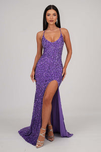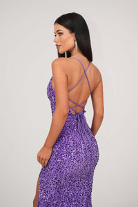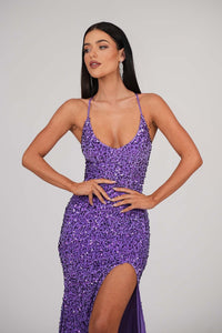 Zelda Side Slit Velvet Sequin Gown - Light Purple