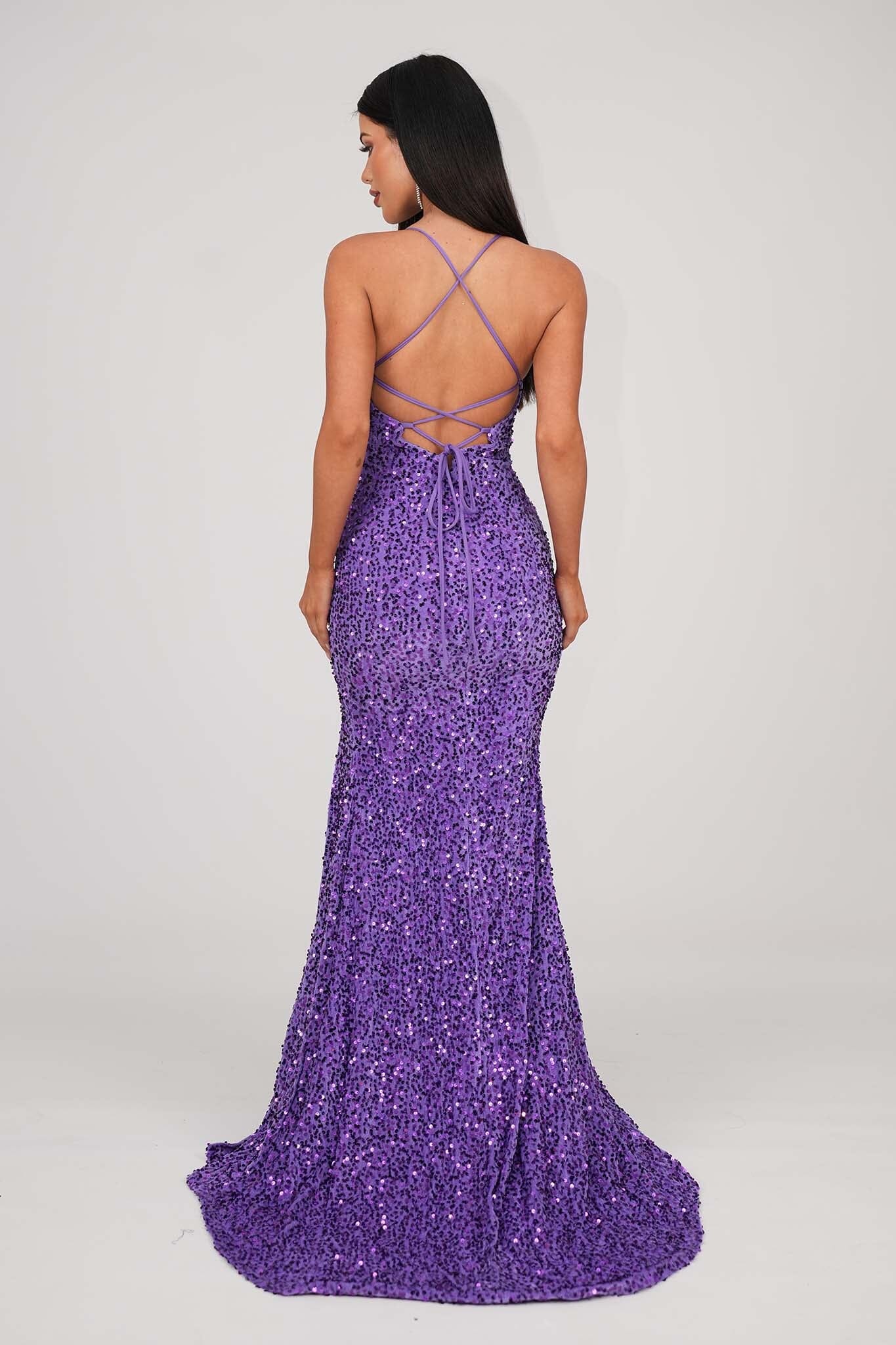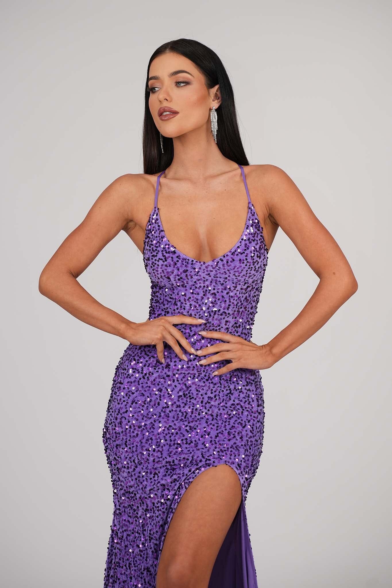 • Purple velvet sequin evening gown